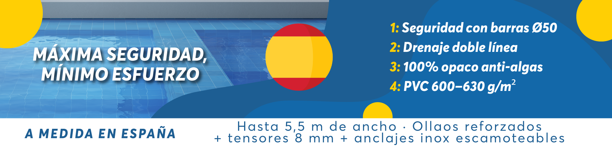 Además, incorpora ollados, tensores y anclajes a lo largo de los laterales para asegurar un ajuste perfecto, reduciendo al máximo la entrada de suciedad y la evaporación del agua.