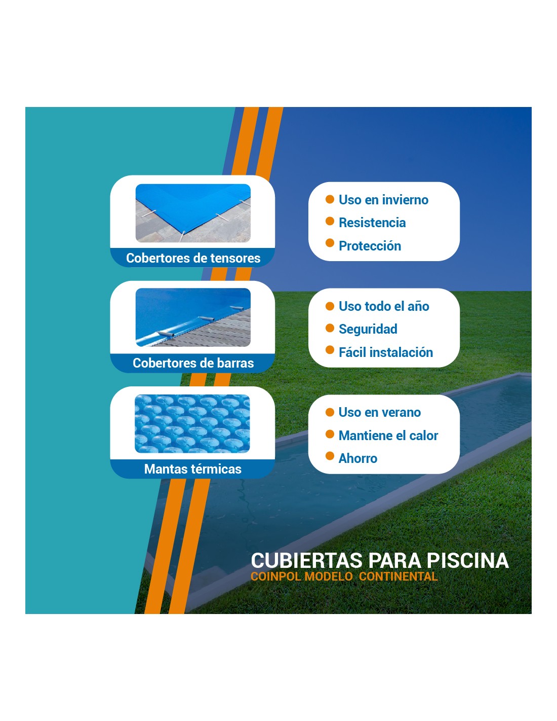 Manta térmica de verano: se coloca sobre la superficie con las burbujas hacia abajo, ayuda a conservar la temperatura que aporta el sol, reduce la evaporación y el consumo de productos químicos, además de impedir la caída de suciedad al agua.