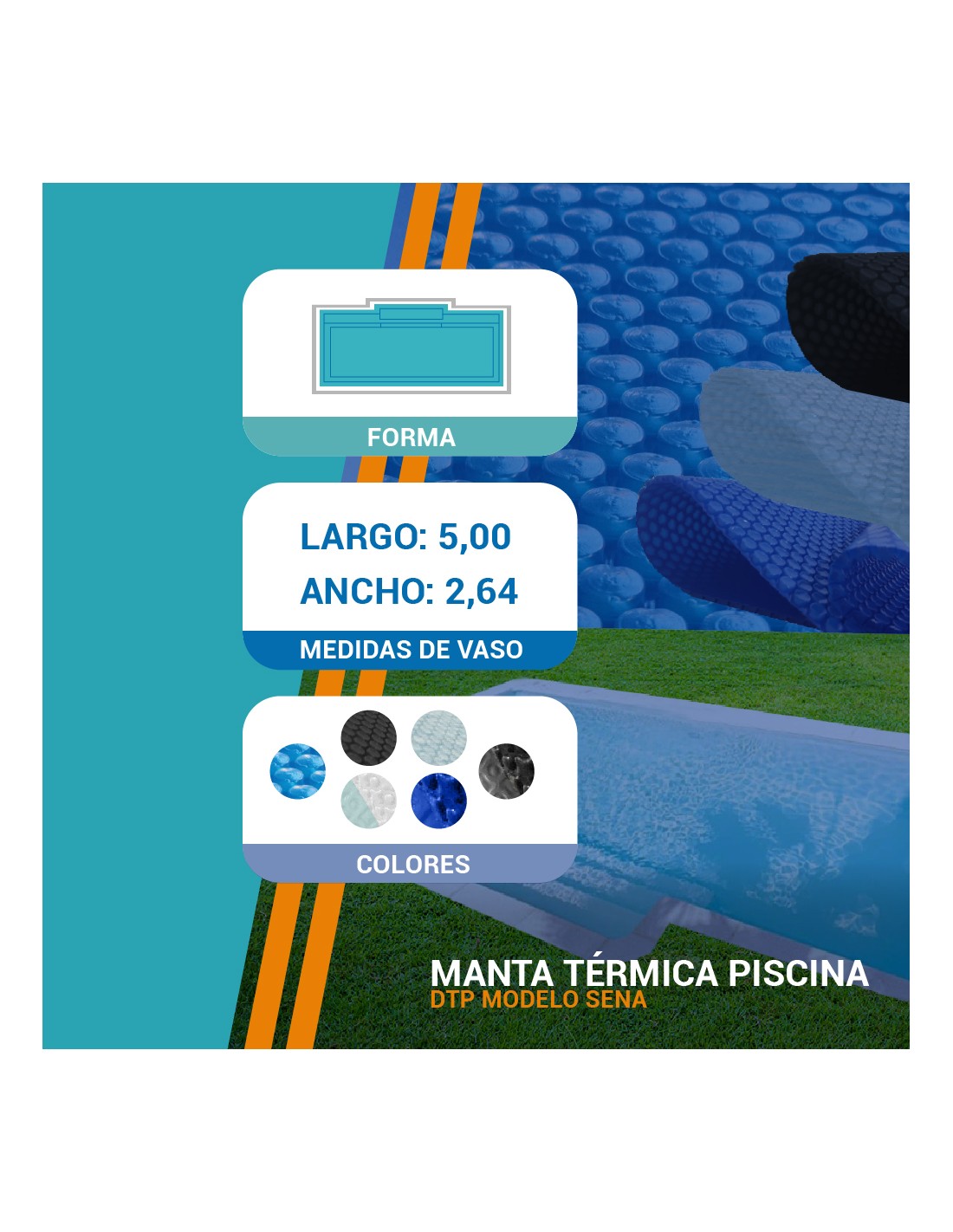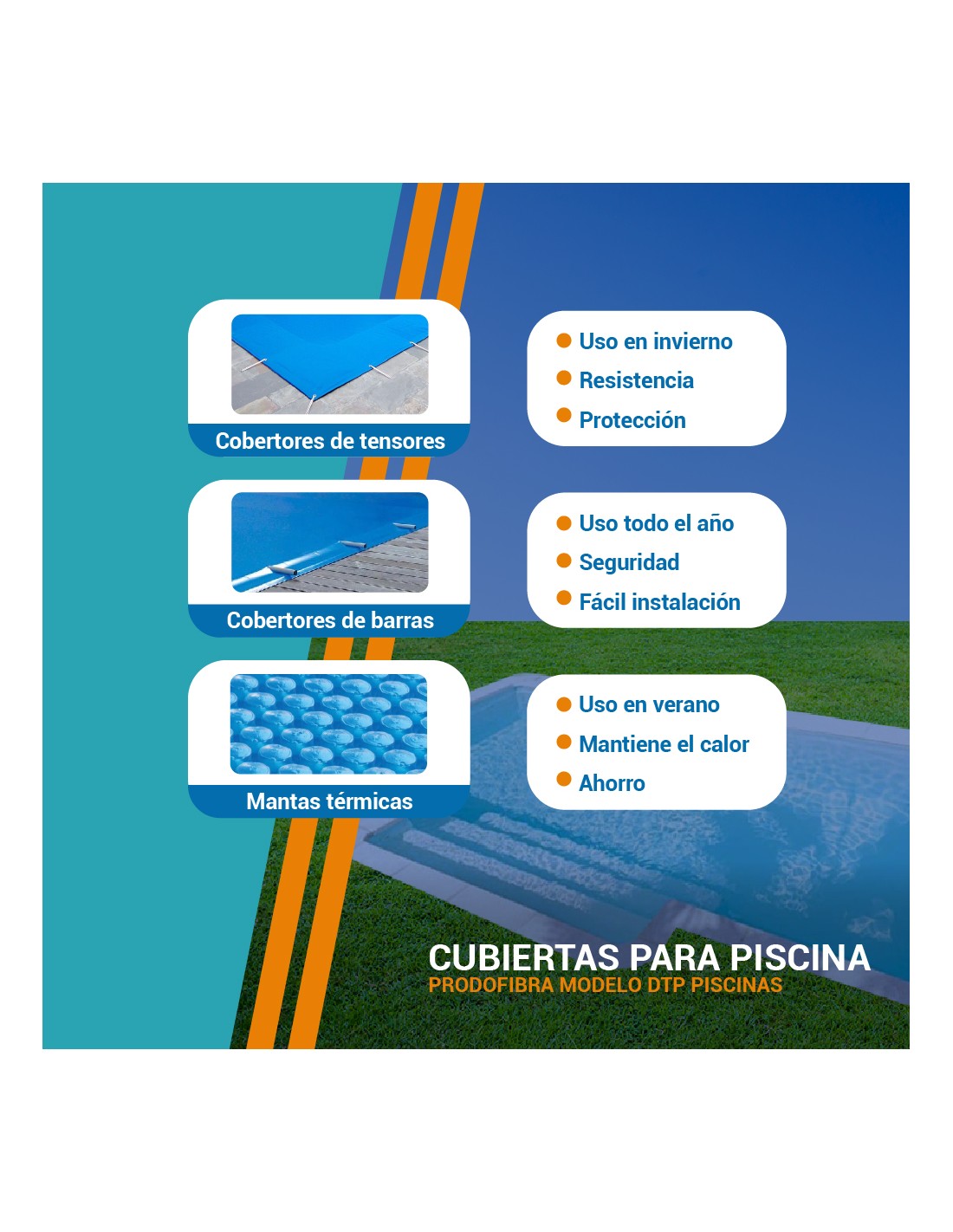 Manta térmica de verano: se coloca sobre la superficie con las burbujas hacia abajo, ayuda a conservar la temperatura que aporta el sol, reduce la evaporación y el consumo de productos químicos, además de impedir la caída de suciedad al agua.