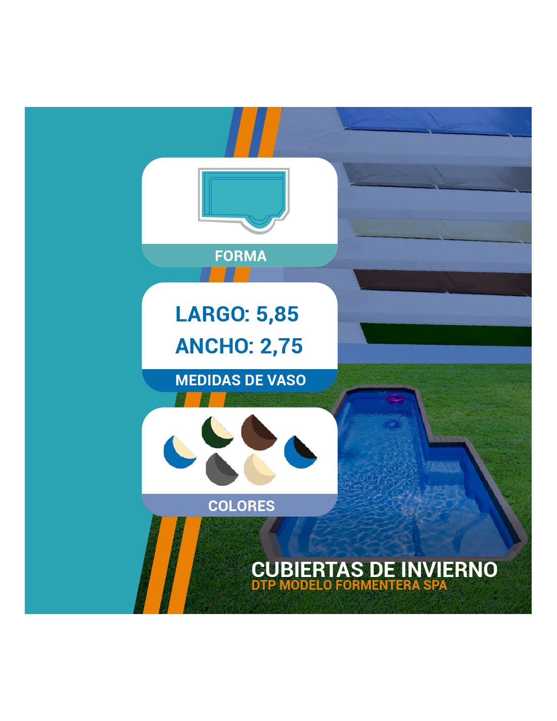 Formentera Spa 6| 5,85 x 2,75m | Cubiertas piscina de poliéster DTP