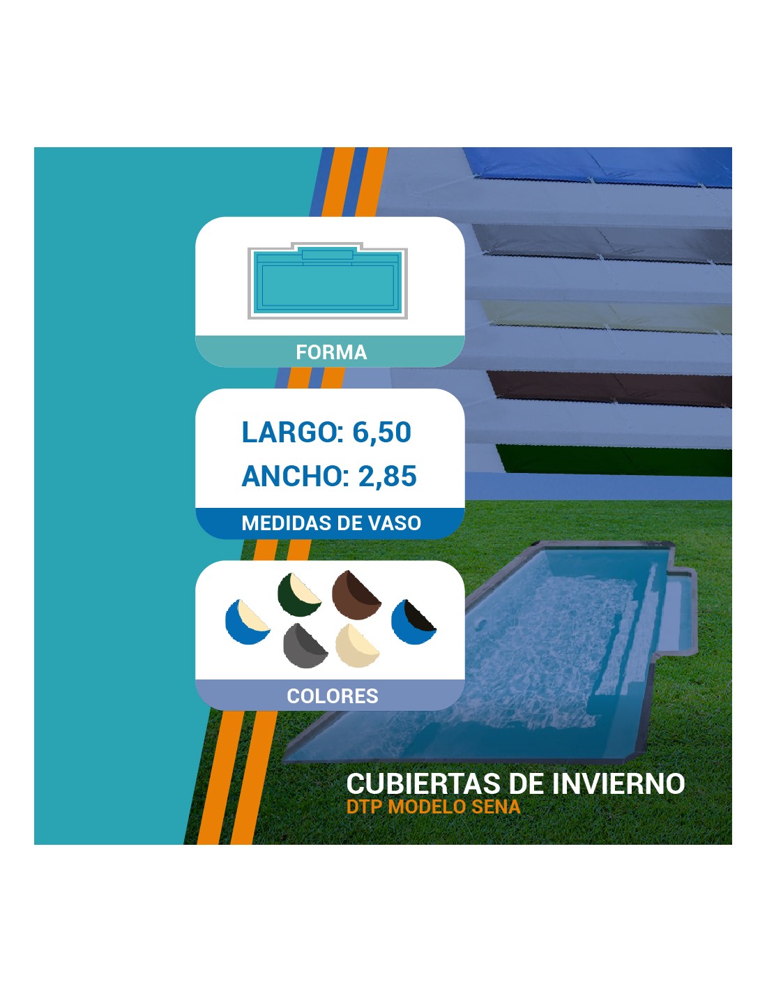Con estas cubiertas a medida, aseguramos comodidad, seguridad y una mayor vida útil para tu piscina modelo Sena 6,50.