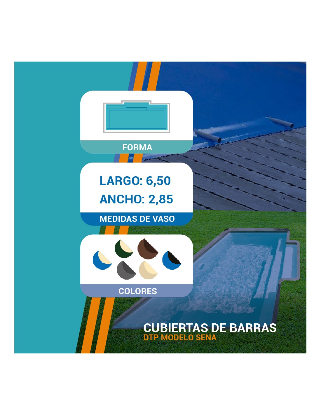 Sena 6,50| 6,50 x 2,85m | Cubiertas piscina de poliéster DTP