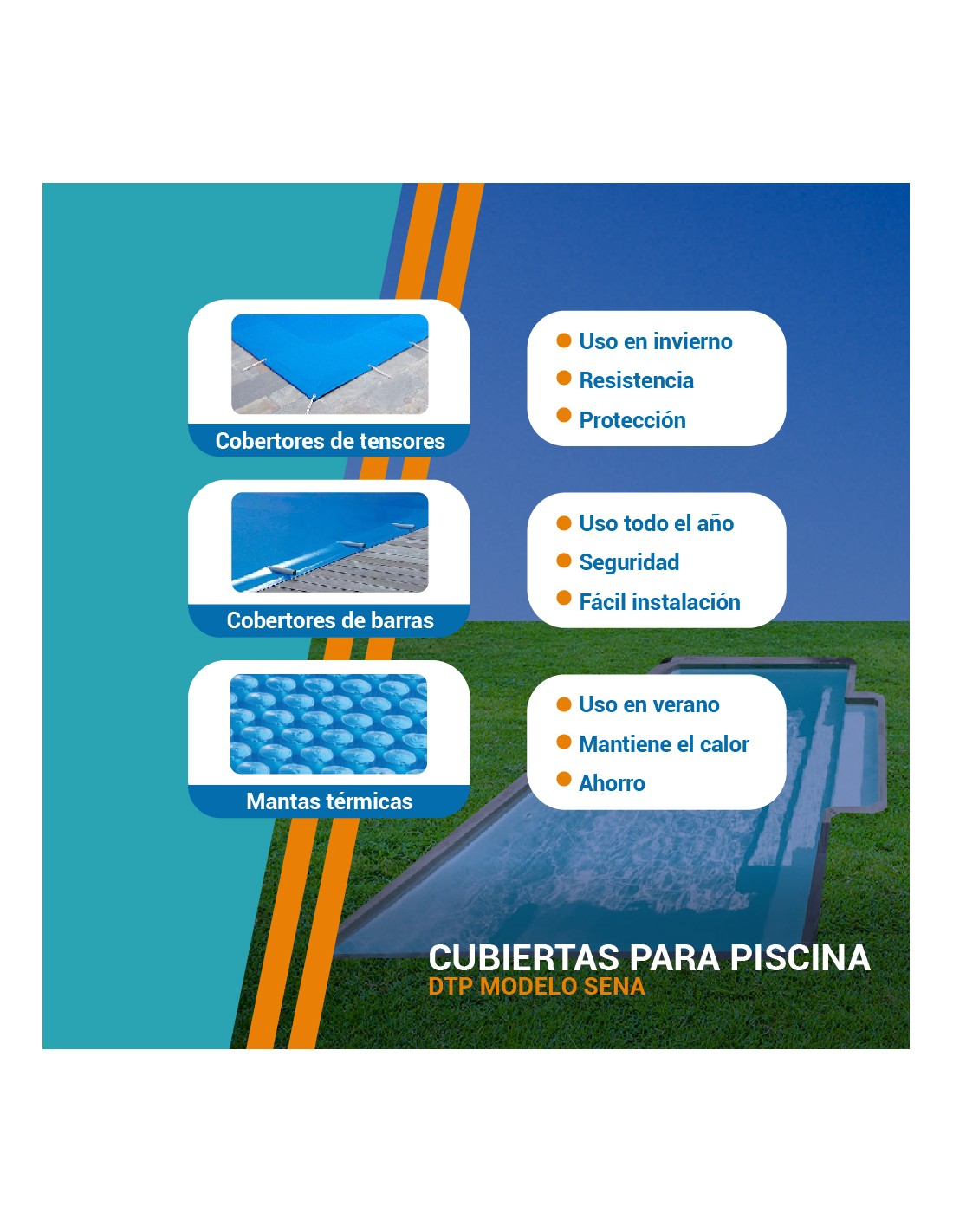 Manta térmica de verano: se coloca sobre la superficie con las burbujas hacia abajo, ayuda a conservar la temperatura que aporta el sol, reduce la evaporación y el consumo de productos químicos, además de impedir la caída de suciedad al agua.