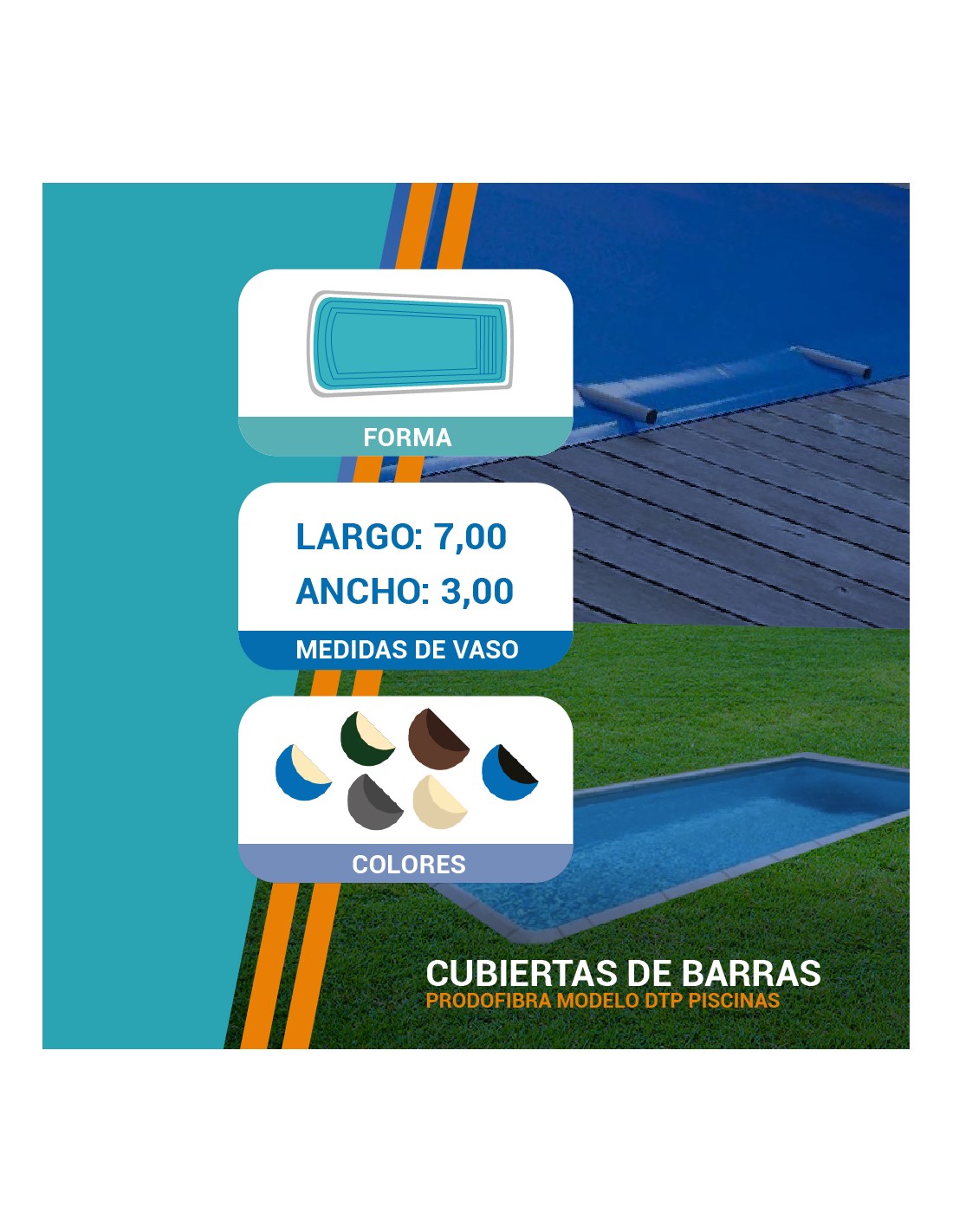 En Piscihogar fabricamos a medida diferentes cubiertas para la piscina de poliéster Carolina 7 de 7 x 3m, fabricada por DTP. Nuestras soluciones permiten mantener tu piscina en perfecto estado durante todo el año: