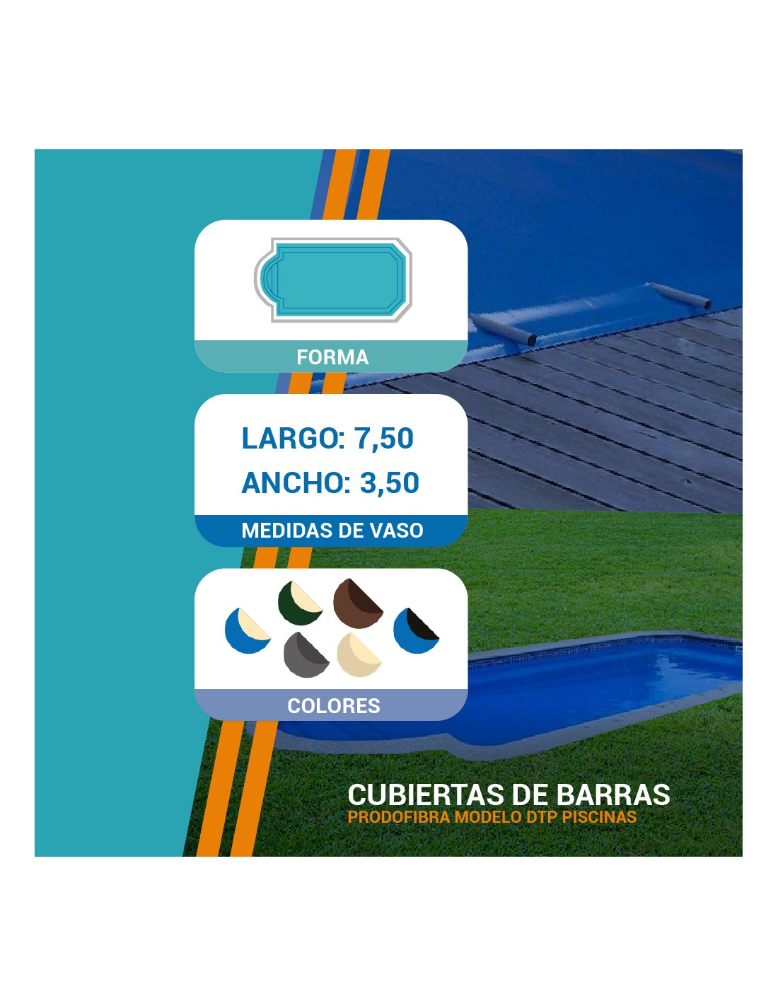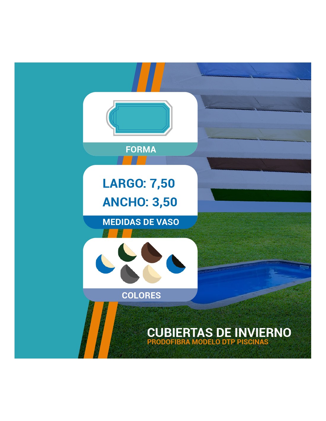 En Piscihogar fabricamos a medida diferentes cubiertas para la piscina de poliéster Mallorca 7,50 de 7,50 x 3,50m, fabricada por DTP. Nuestras soluciones permiten mantener tu piscina en perfecto estado durante todo el año: