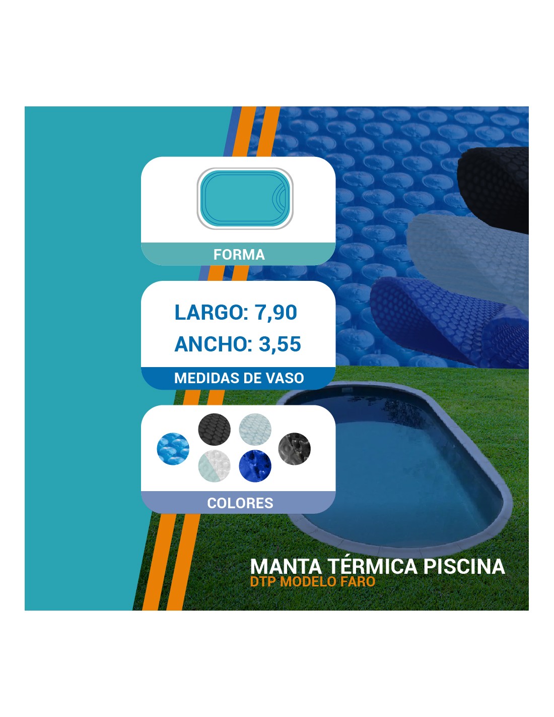 Manta térmica de verano: se coloca sobre la superficie con las burbujas hacia abajo, ayuda a conservar la temperatura que aporta el sol, reduce la evaporación y el consumo de productos químicos, además de impedir la caída de suciedad al agua.