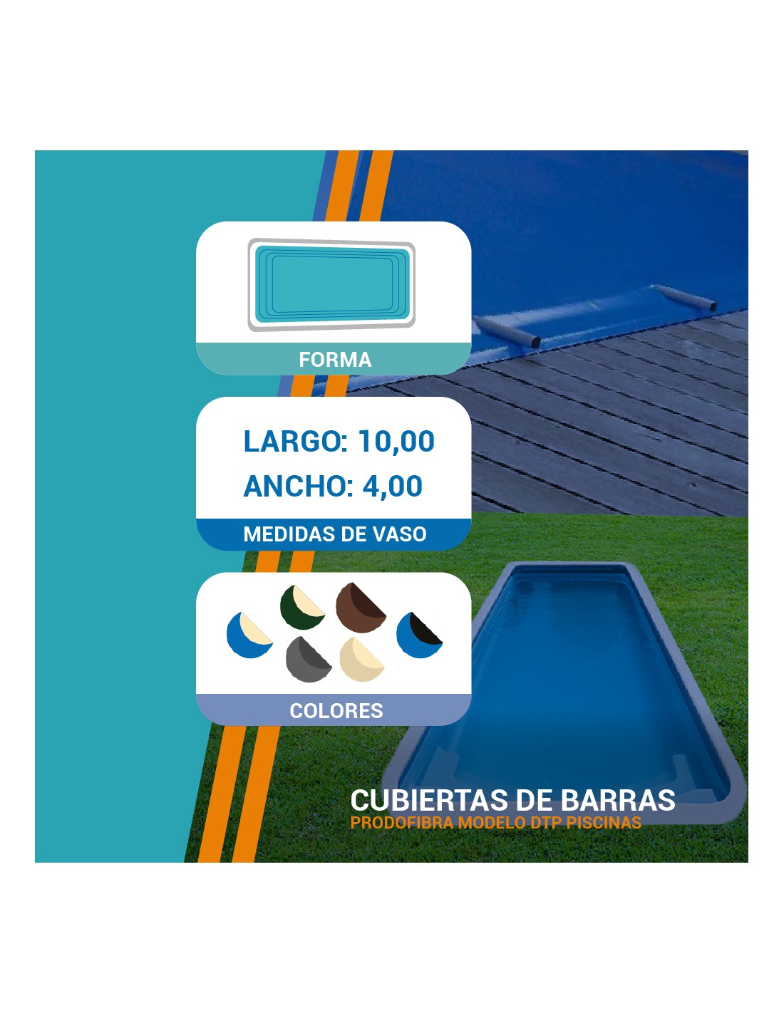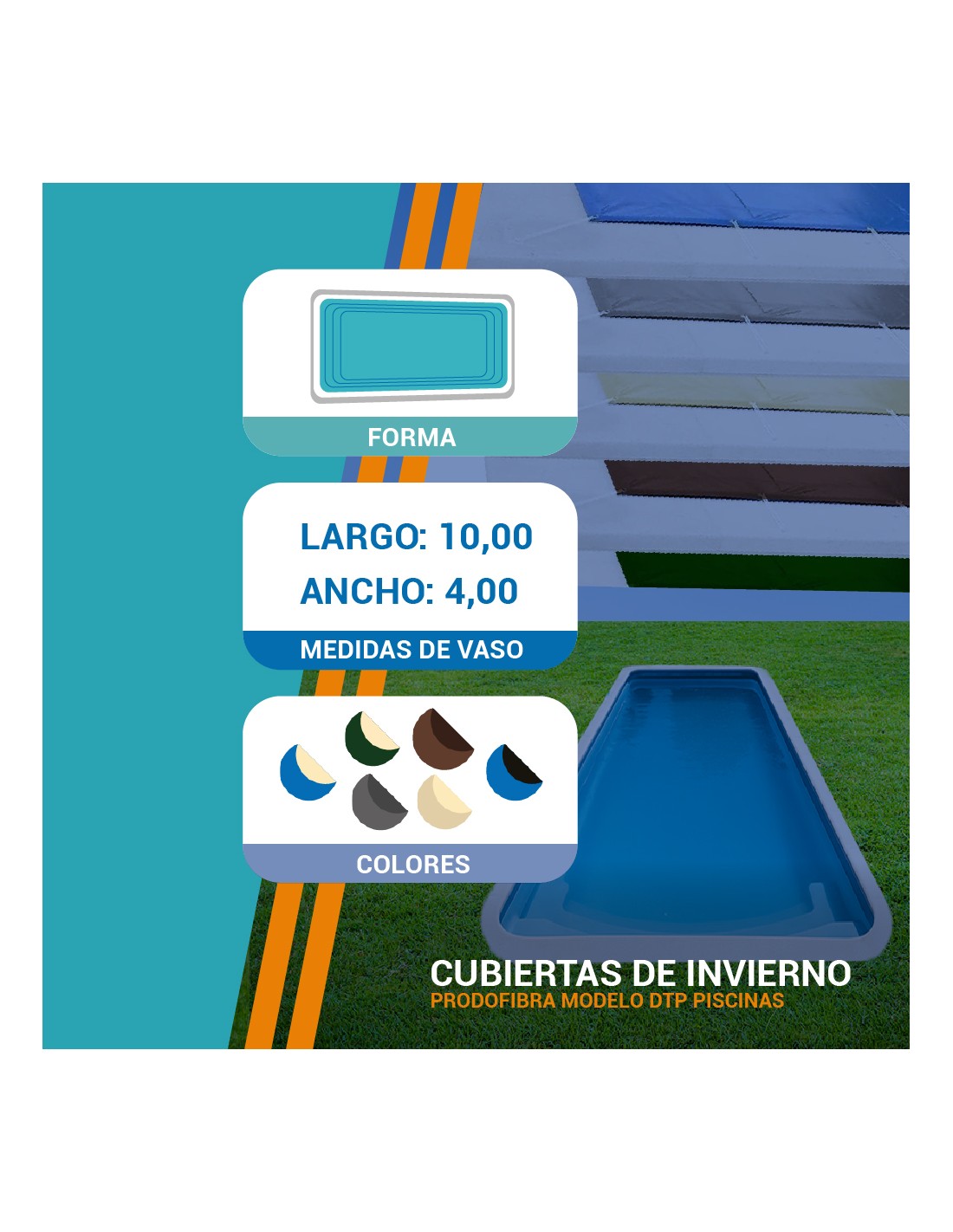 En Piscihogar fabricamos a medida diferentes cubiertas para la piscina de poliéster Mallorca 10 de 10 x 4m, fabricada por DTP. Nuestras soluciones permiten mantener tu piscina en perfecto estado durante todo el año: