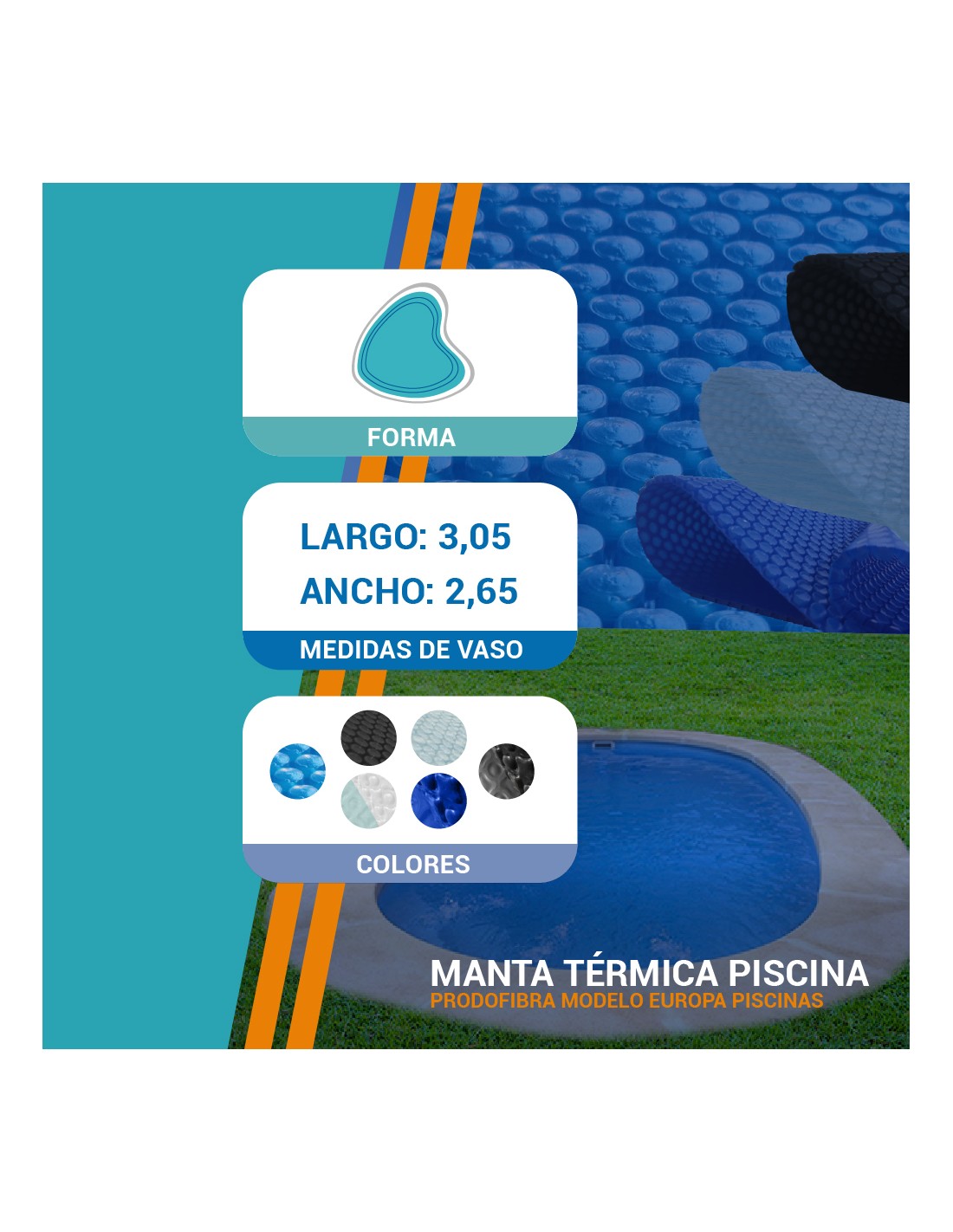 Manta térmica de verano: se coloca sobre la superficie con las burbujas hacia abajo, ayuda a conservar la temperatura que aporta el sol, reduce la evaporación y el consumo de productos químicos, además de impedir la caída de suciedad al agua.