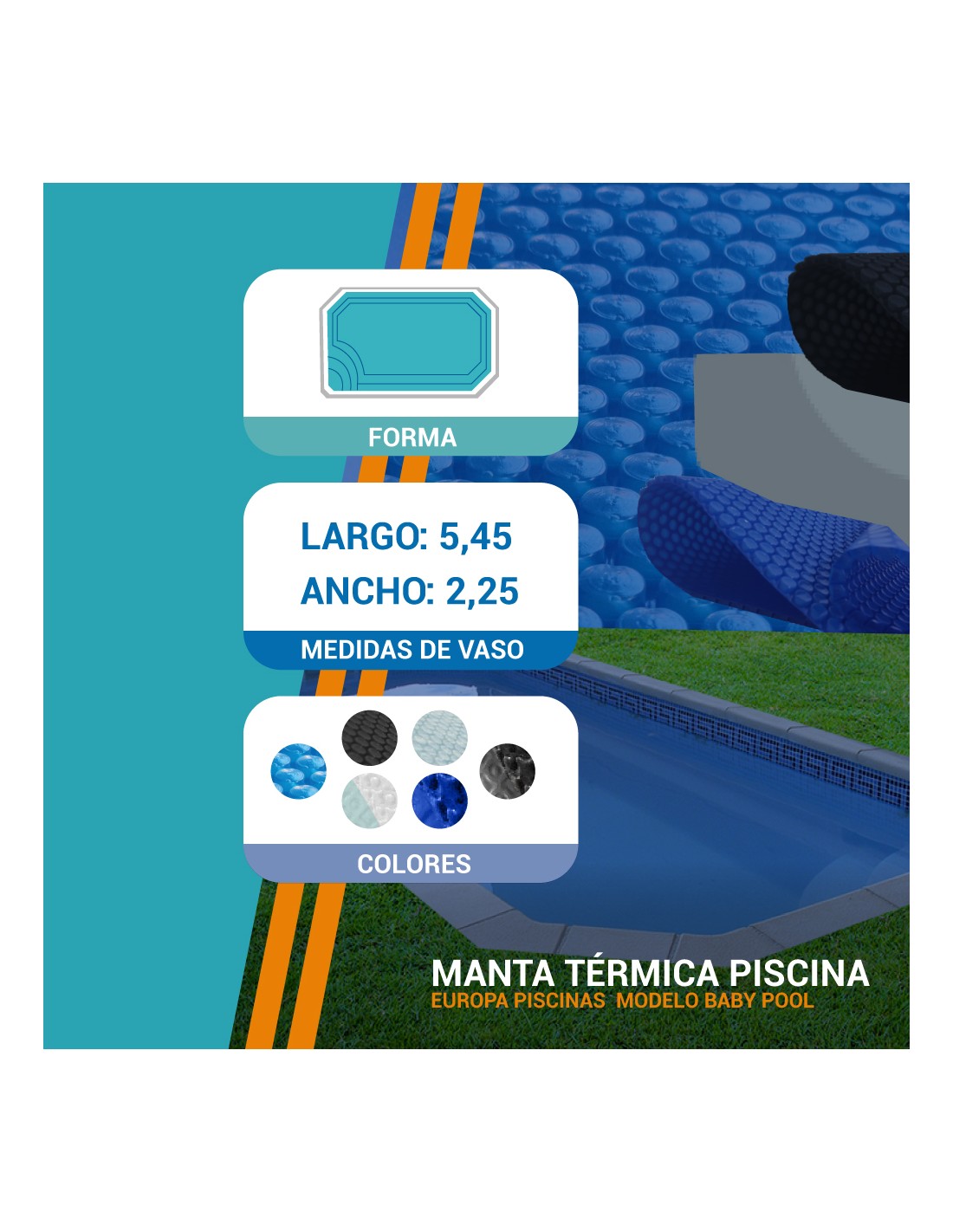 Manta térmica de verano: se coloca sobre la superficie con las burbujas hacia abajo, ayuda a conservar la temperatura que aporta el sol, reduce la evaporación y el consumo de productos químicos, además de impedir la caída de suciedad al agua.