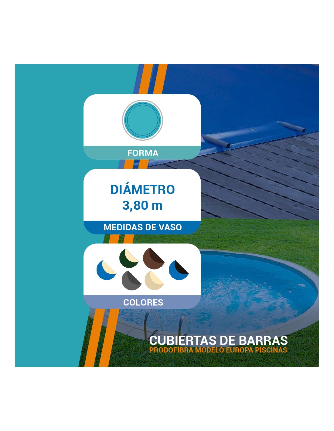 Cobertor de barras: válido para todo el año, con barras de aluminio que soportan hasta 80 kg, ofreciendo máxima seguridad. Dispone de refuerzo perimetral y drenajes para un uso cómodo y duradero.