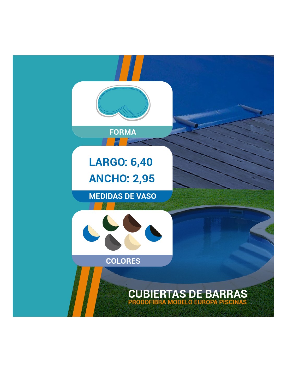 En Piscihogar fabricamos a medida diferentes cubiertas para la piscina de poliéster Oporto de 6,40x2,95 m, fabricada por Europa Piscinas. Nuestras soluciones permiten mantener tu piscina en perfecto estado durante todo el año: