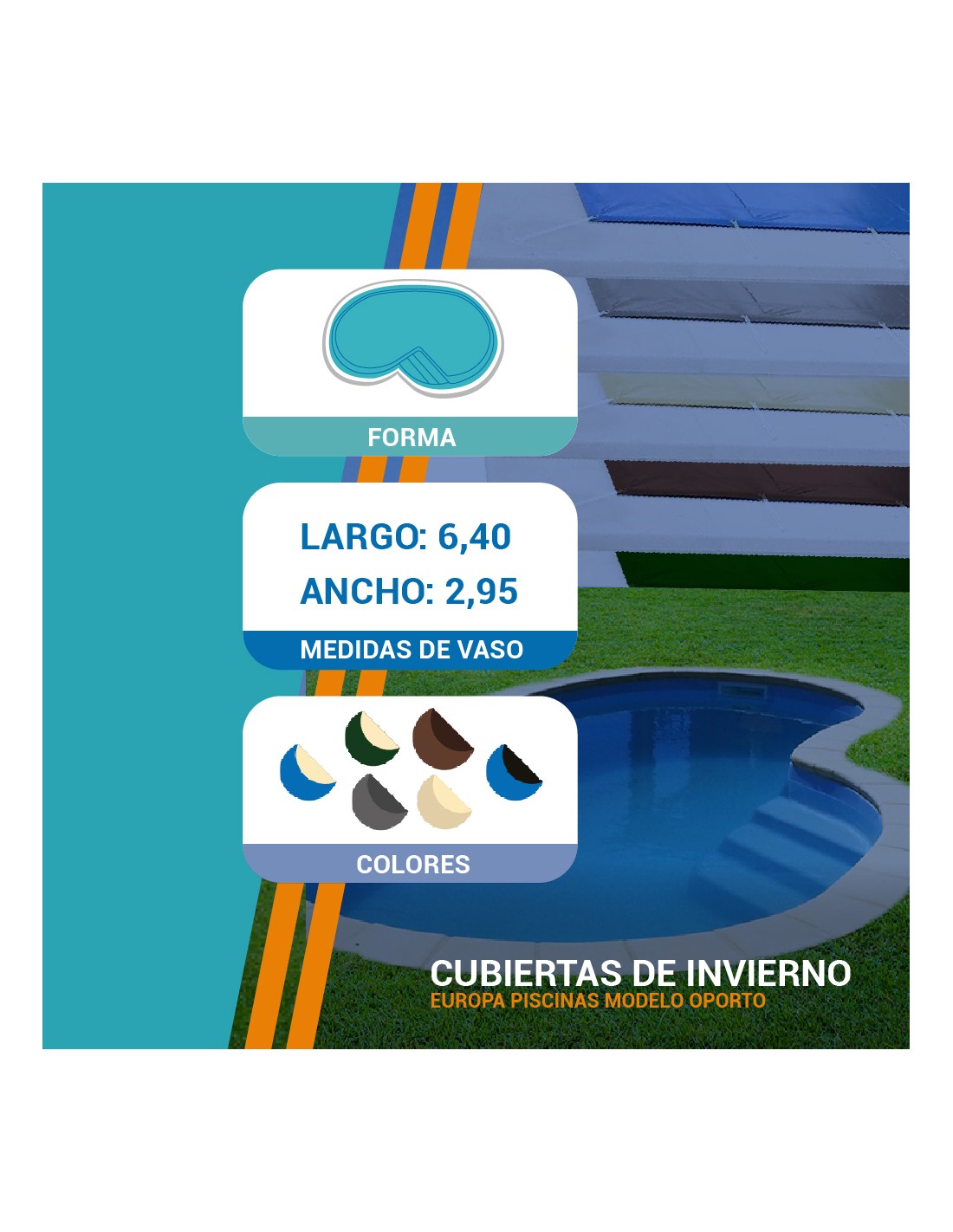 Oporto| 6,40 x 2,95m | Cubiertas piscina de poliéster Europa