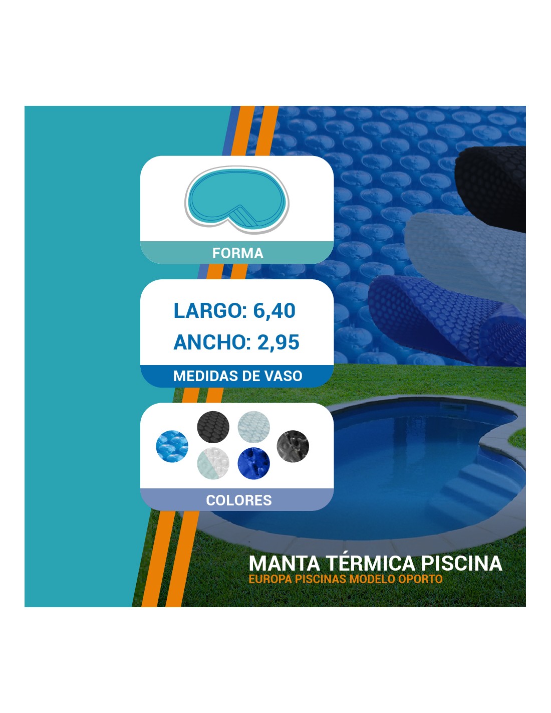 Manta térmica de verano: se coloca sobre la superficie con las burbujas hacia abajo, ayuda a conservar la temperatura que aporta el sol, reduce la evaporación y el consumo de productos químicos, además de impedir la caída de suciedad al agua.