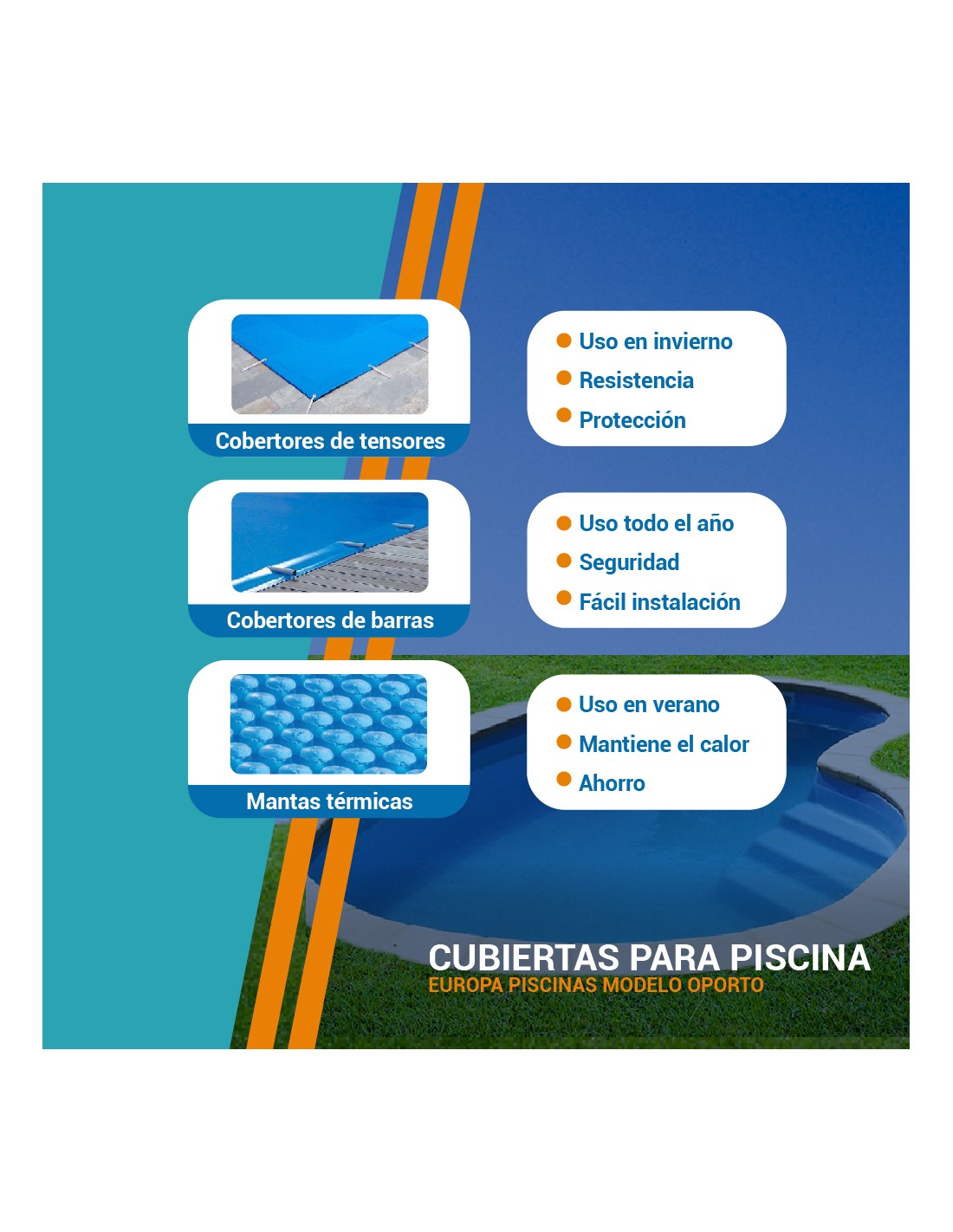 Con estas cubiertas a medida, aseguramos comodidad, seguridad y una mayor vida útil para tu piscina modelo Oporto.
