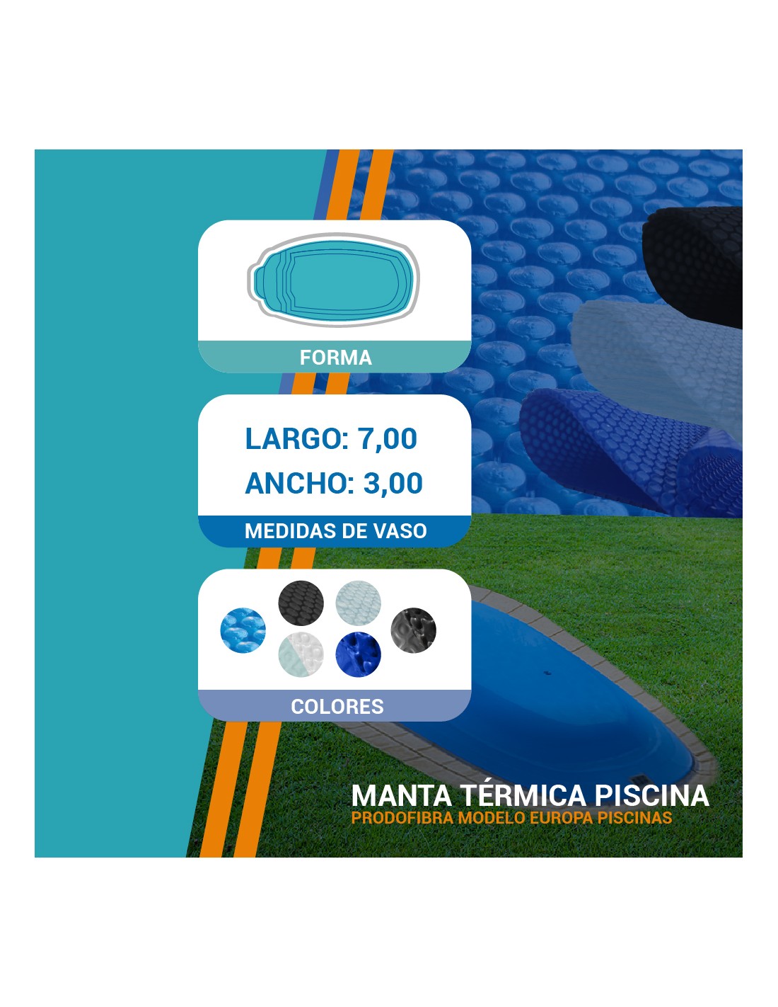 Manta térmica de verano: se coloca sobre la superficie con las burbujas hacia abajo, ayuda a conservar la temperatura que aporta el sol, reduce la evaporación y el consumo de productos químicos, además de impedir la caída de suciedad al agua.