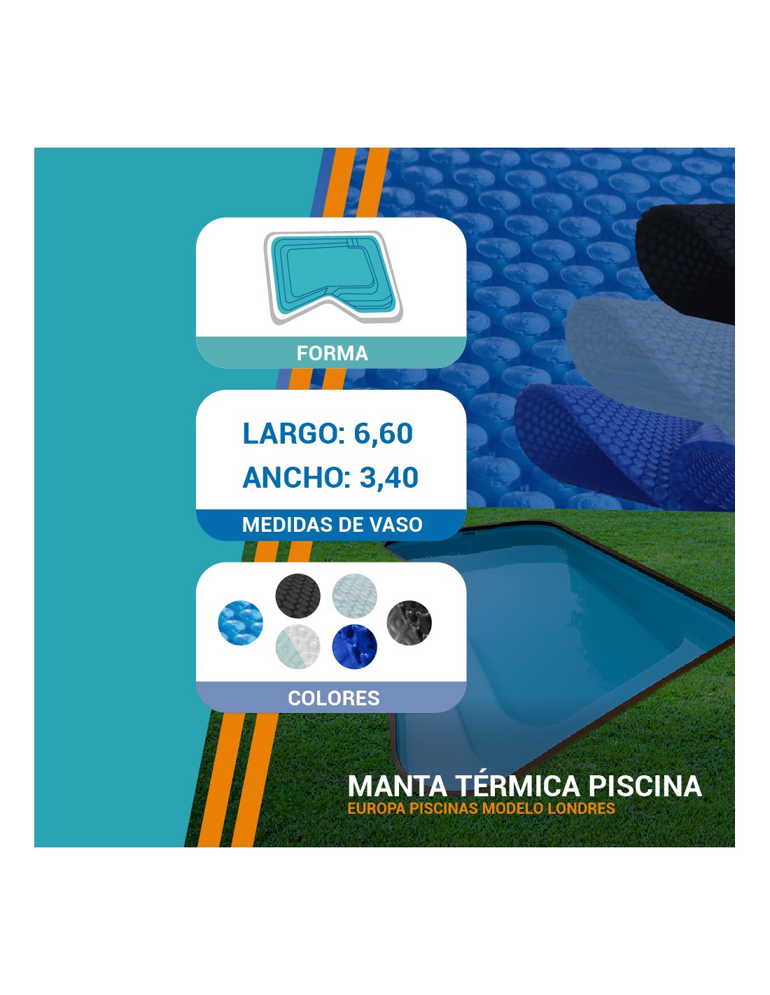 Manta térmica de verano: se coloca sobre la superficie con las burbujas hacia abajo, ayuda a conservar la temperatura que aporta el sol, reduce la evaporación y el consumo de productos químicos, además de impedir la caída de suciedad al agua.