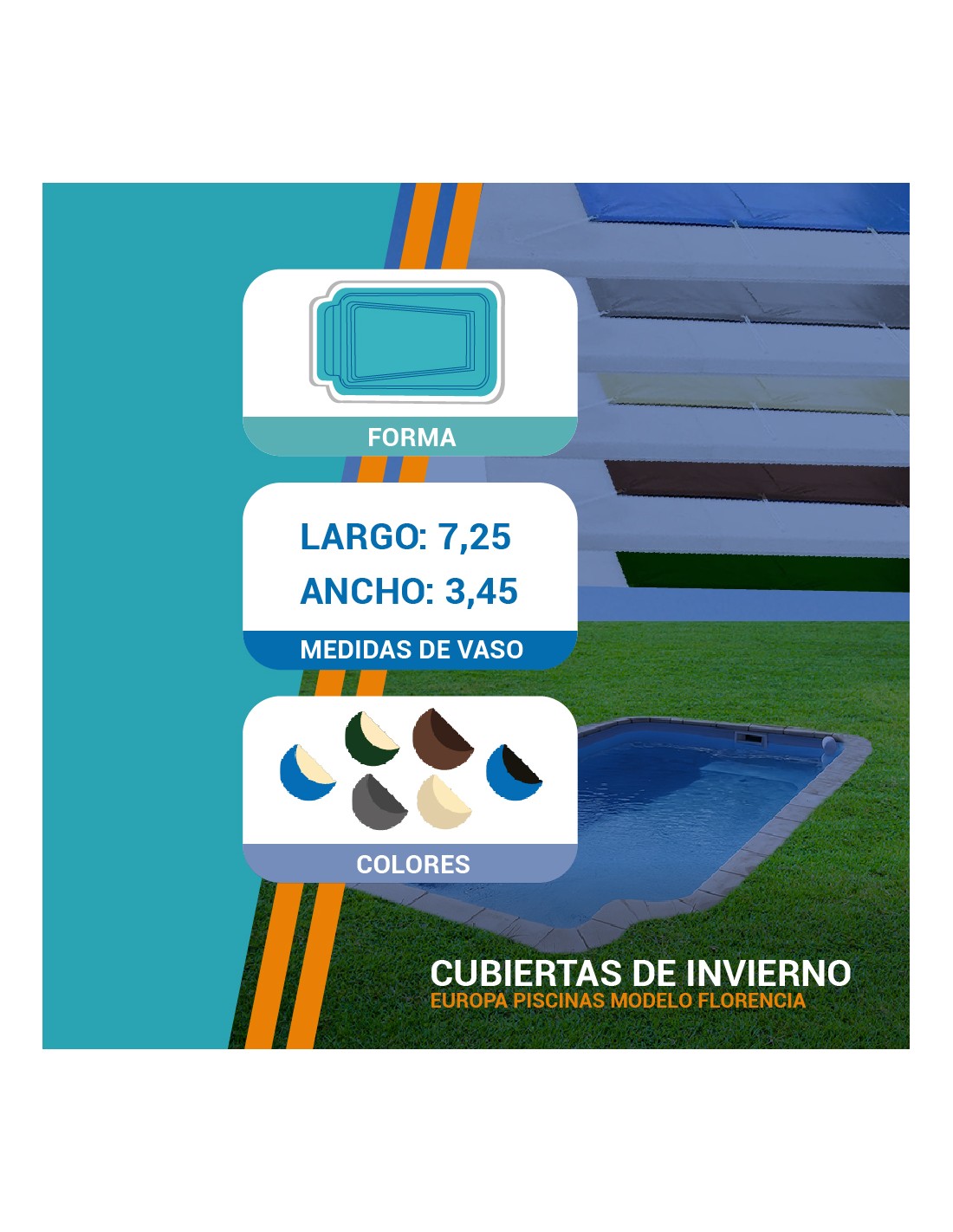 Florencia | 7,25 x 3,45m | Cubiertas piscina de poliéster Europa