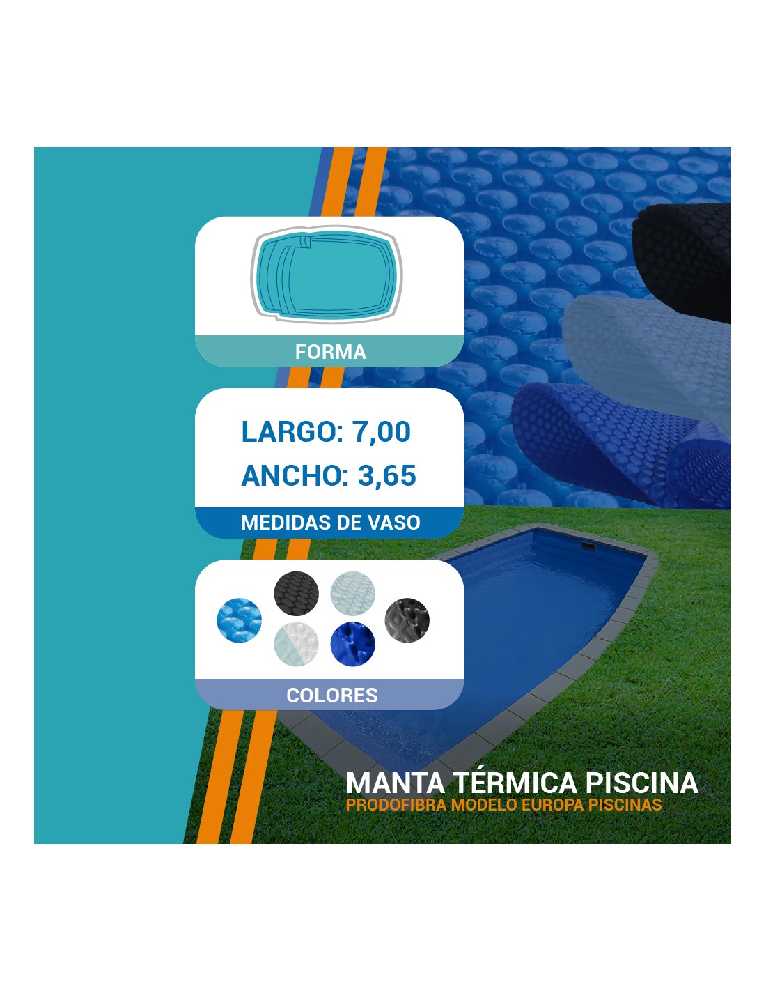 Manta térmica de verano: se coloca sobre la superficie con las burbujas hacia abajo, ayuda a conservar la temperatura que aporta el sol, reduce la evaporación y el consumo de productos químicos, además de impedir la caída de suciedad al agua.