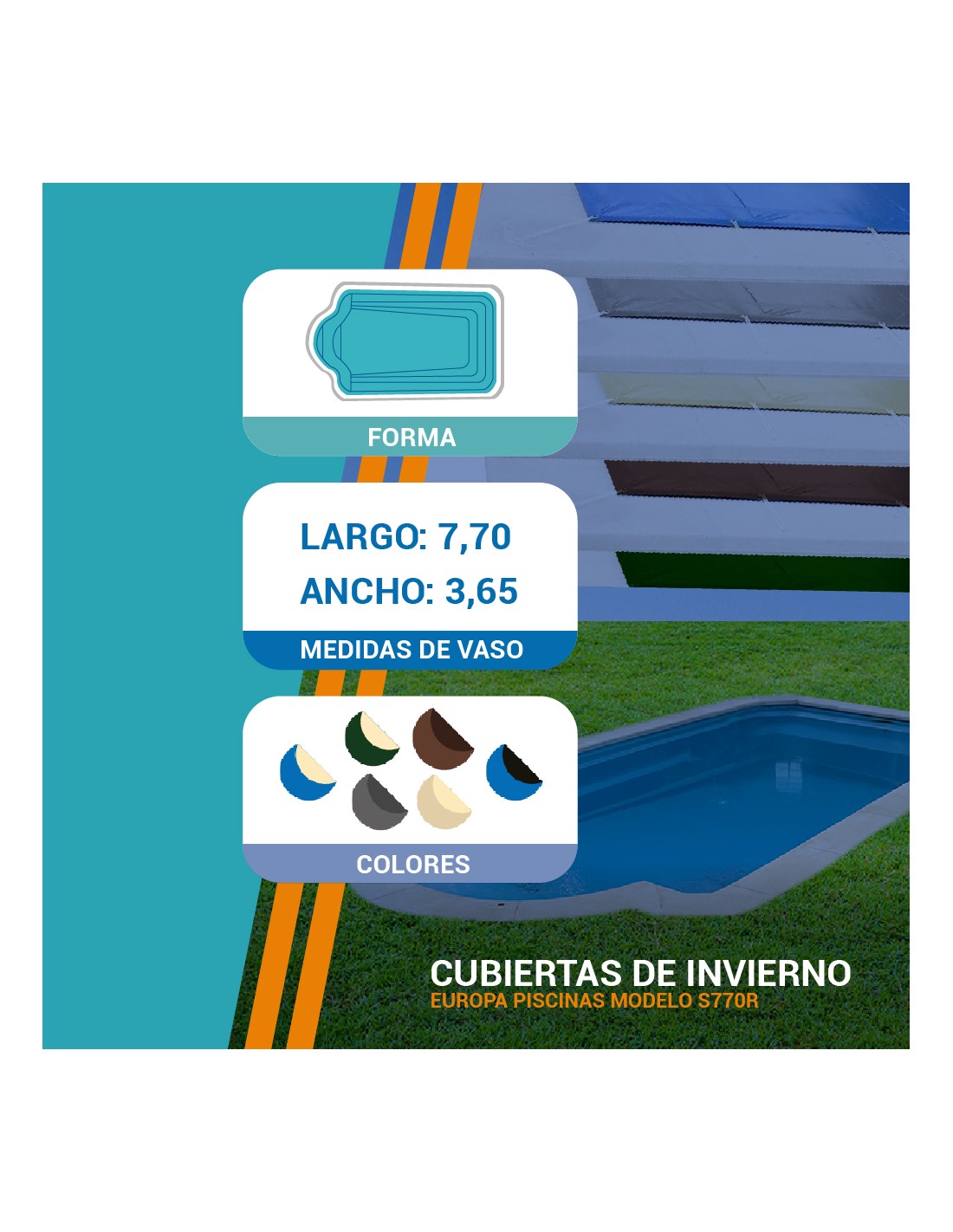S770R | 7,70 x 3,65m | Cubiertas piscina de poliéster Europa