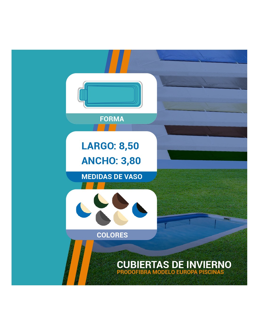 Paris | 8,50 x 3,80m | Cubiertas piscina de poliéster Europa
