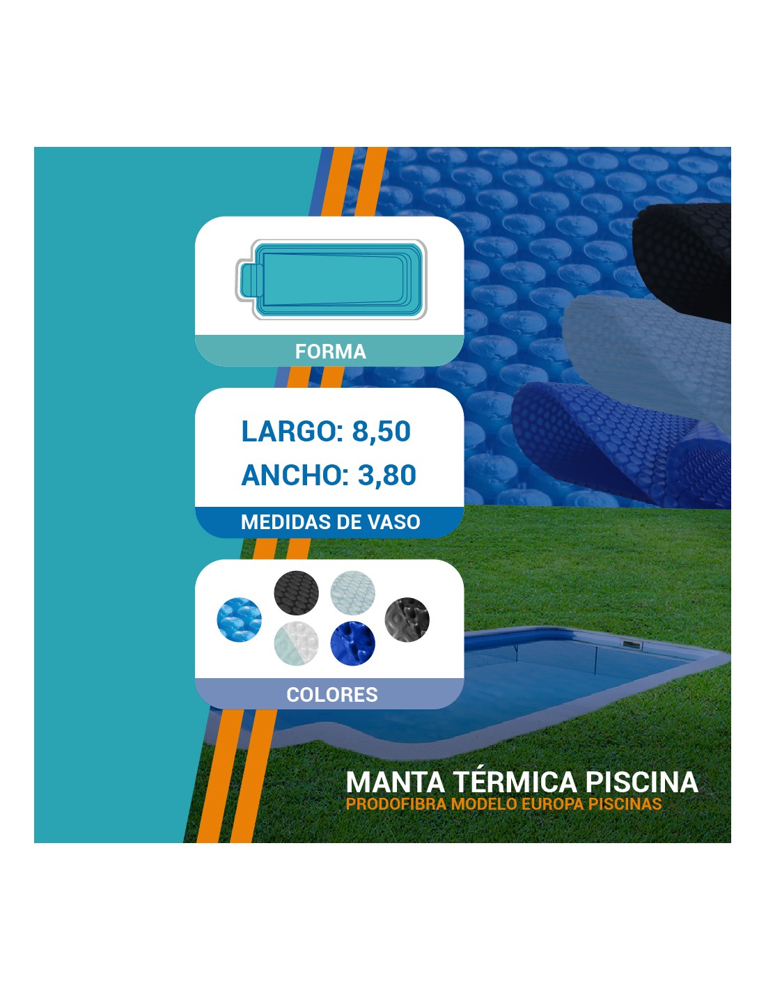 Manta térmica de verano: se coloca sobre la superficie con las burbujas hacia abajo, ayuda a conservar la temperatura que aporta el sol, reduce la evaporación y el consumo de productos químicos, además de impedir la caída de suciedad al agua.