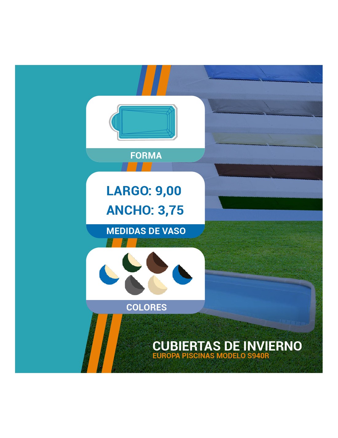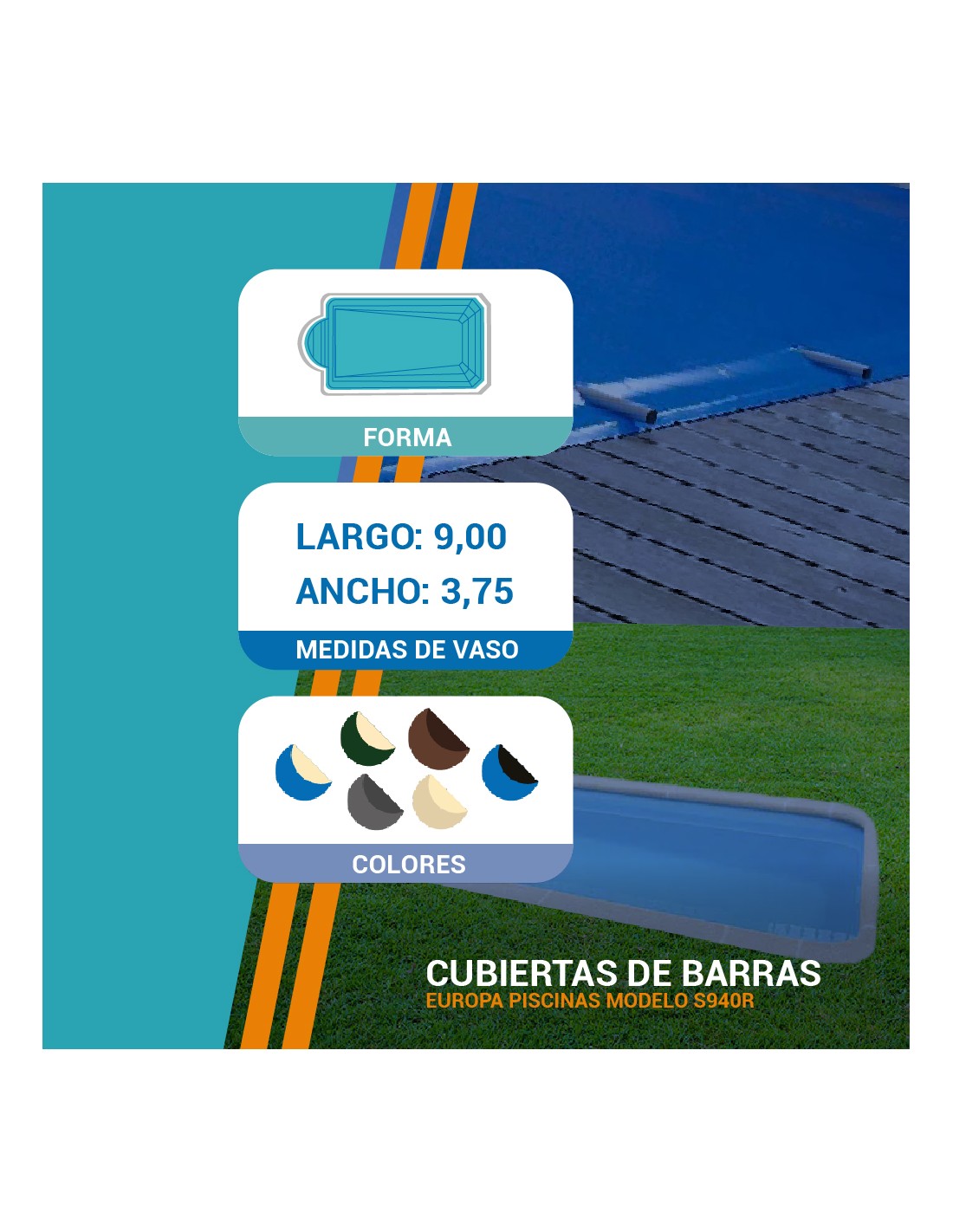 S940R | 9,00 x 3,75m | Cubiertas piscina de poliéster Europa