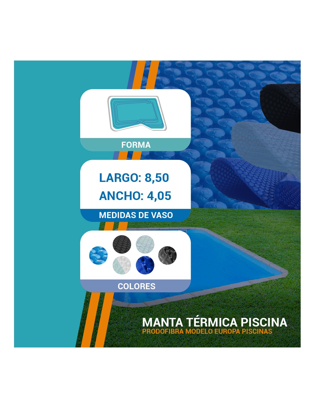 Manta térmica: nuestras mantas térmicas aprovechan la energía solar para calentar el agua y conservar la temperatura durante la noche. Reducen la evaporación y mantienen la piscina más limpia, cómoda y lista para disfrutar.