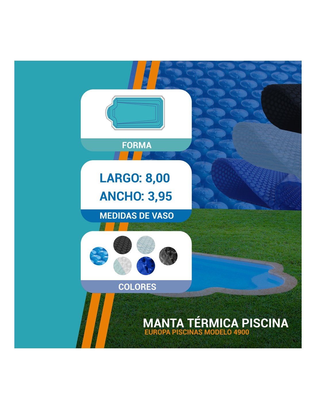 Manta térmica de verano: se coloca sobre la superficie con las burbujas hacia abajo, ayuda a conservar la temperatura que aporta el sol, reduce la evaporación y el consumo de productos químicos, además de impedir la caída de suciedad al agua.
