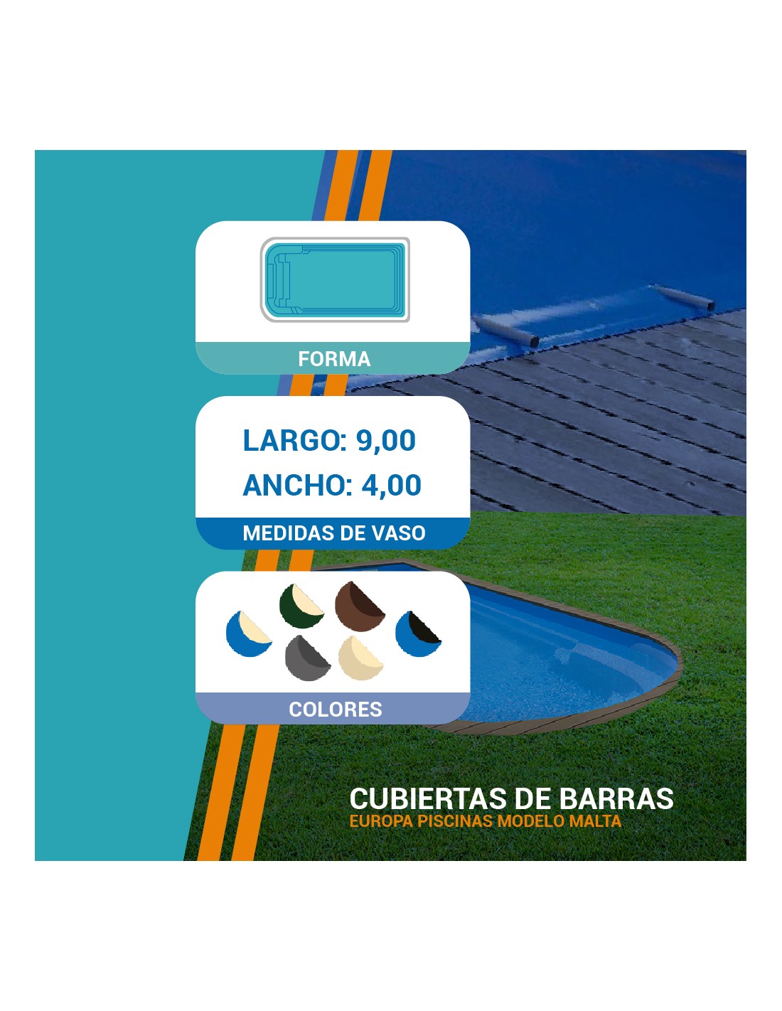 Malta | 9,00 x 4,00m | Cubiertas piscina de poliéster Europa