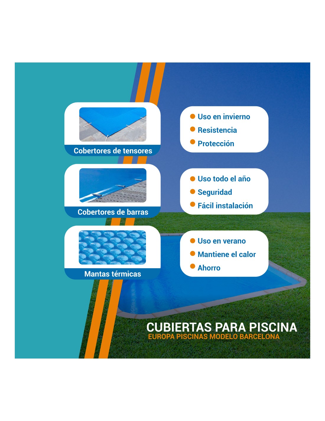 Con estas cubiertas a medida, aseguramos comodidad, seguridad y una mayor vida útil para tu piscina modelo Barcelona.