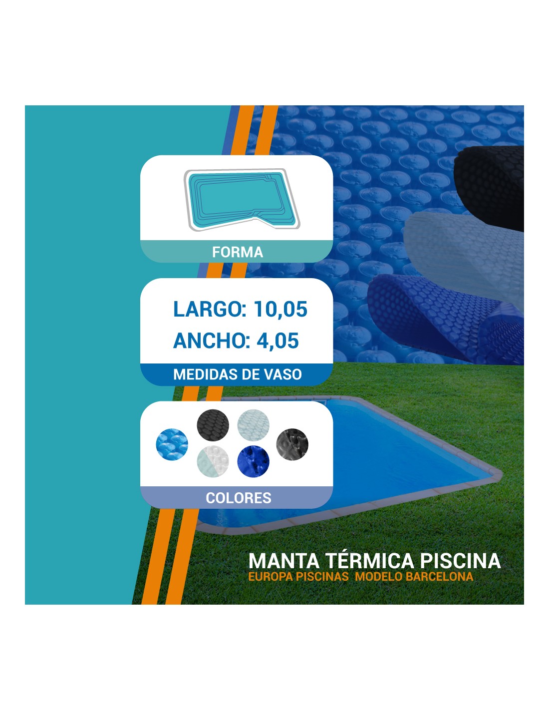 Manta térmica de verano: se coloca sobre la superficie con las burbujas hacia abajo, ayuda a conservar la temperatura que aporta el sol, reduce la evaporación y el consumo de productos químicos, además de impedir la caída de suciedad al agua.