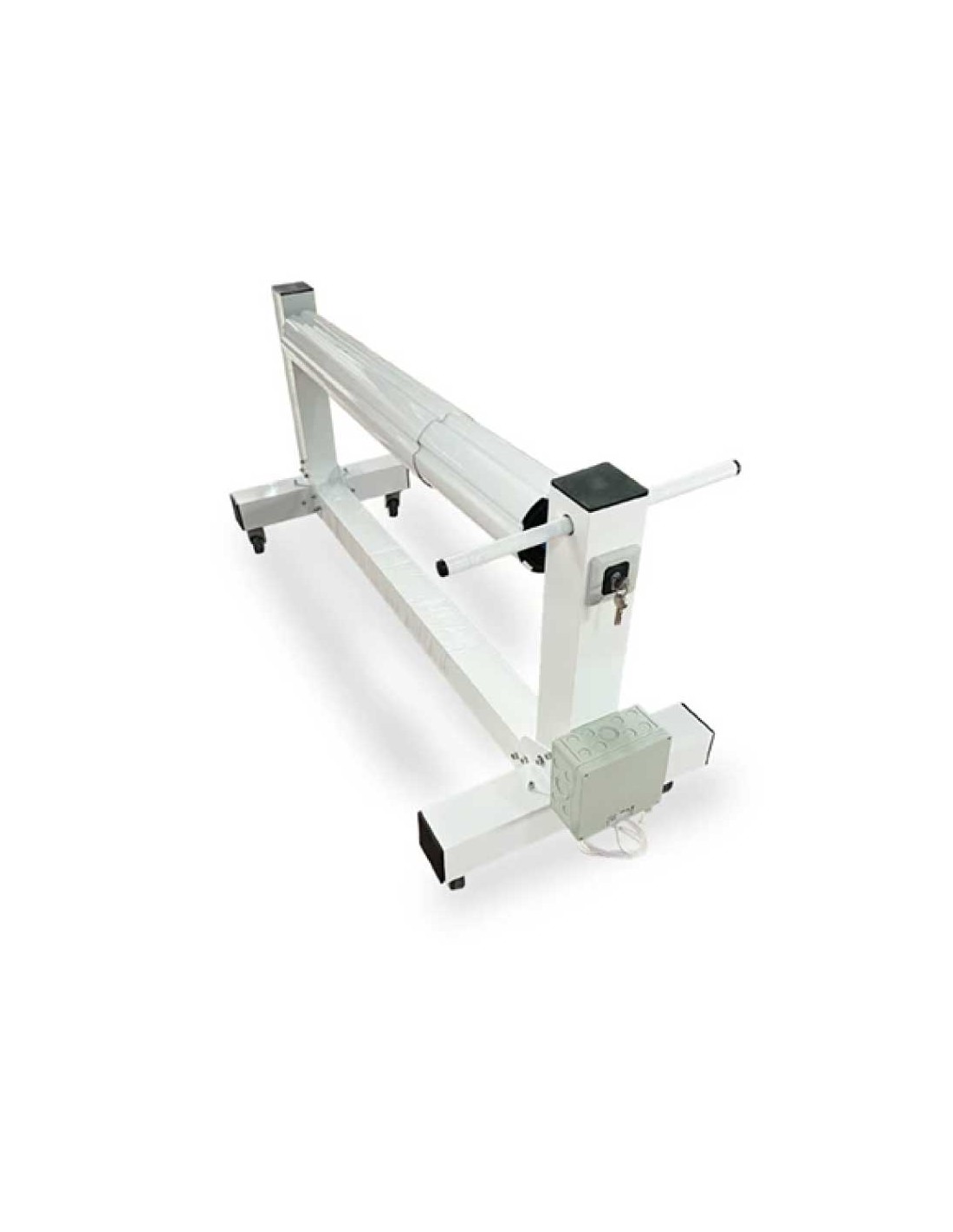 Se trata de un enrollador robusto y reforzado, diseñado especialmente para piscinas de gran formato. Con tubo telescópico de aluminio lacado Ø160 mm y estructura extra resistente 100x100 mm en blanco.
