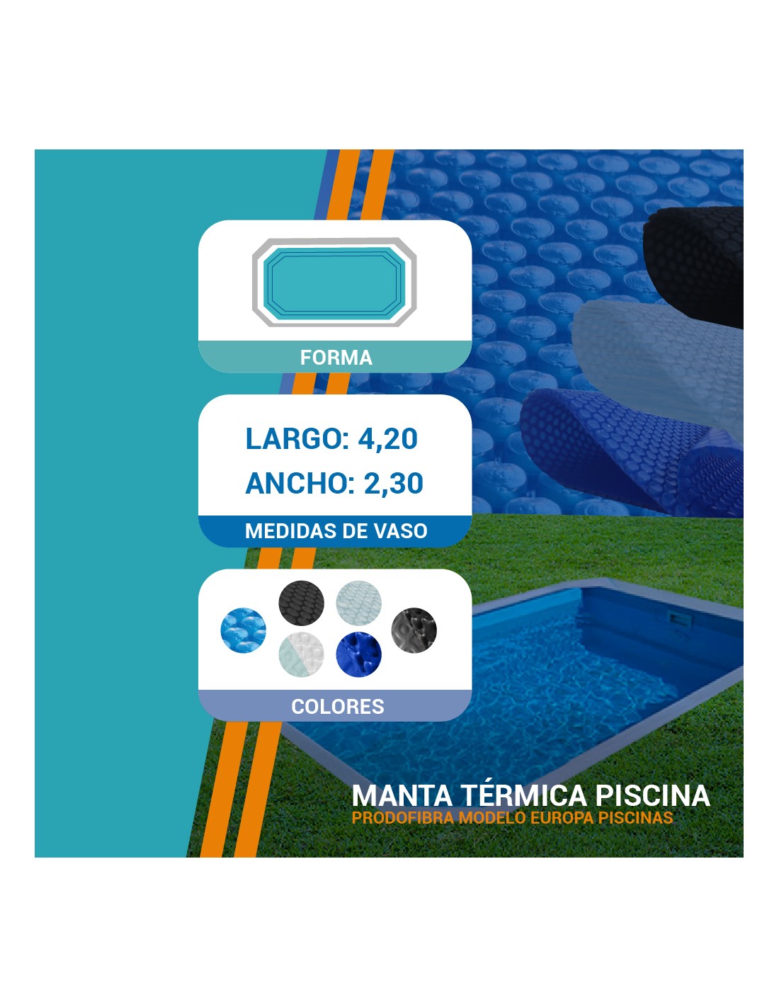 Manta térmica de verano: se coloca sobre la superficie con las burbujas hacia abajo, ayuda a conservar la temperatura que aporta el sol, reduce la evaporación y el consumo de productos químicos, además de impedir la caída de suciedad al agua.