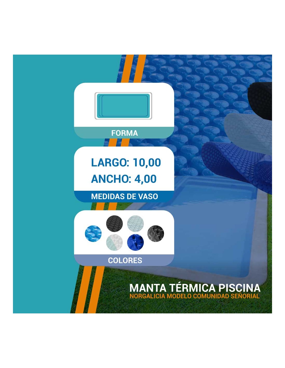 Manta térmica de verano: se coloca sobre la superficie con las burbujas hacia abajo, ayuda a conservar la temperatura que aporta el sol, reduce la evaporación y el consumo de productos químicos, además de impedir la caída de suciedad al agua.