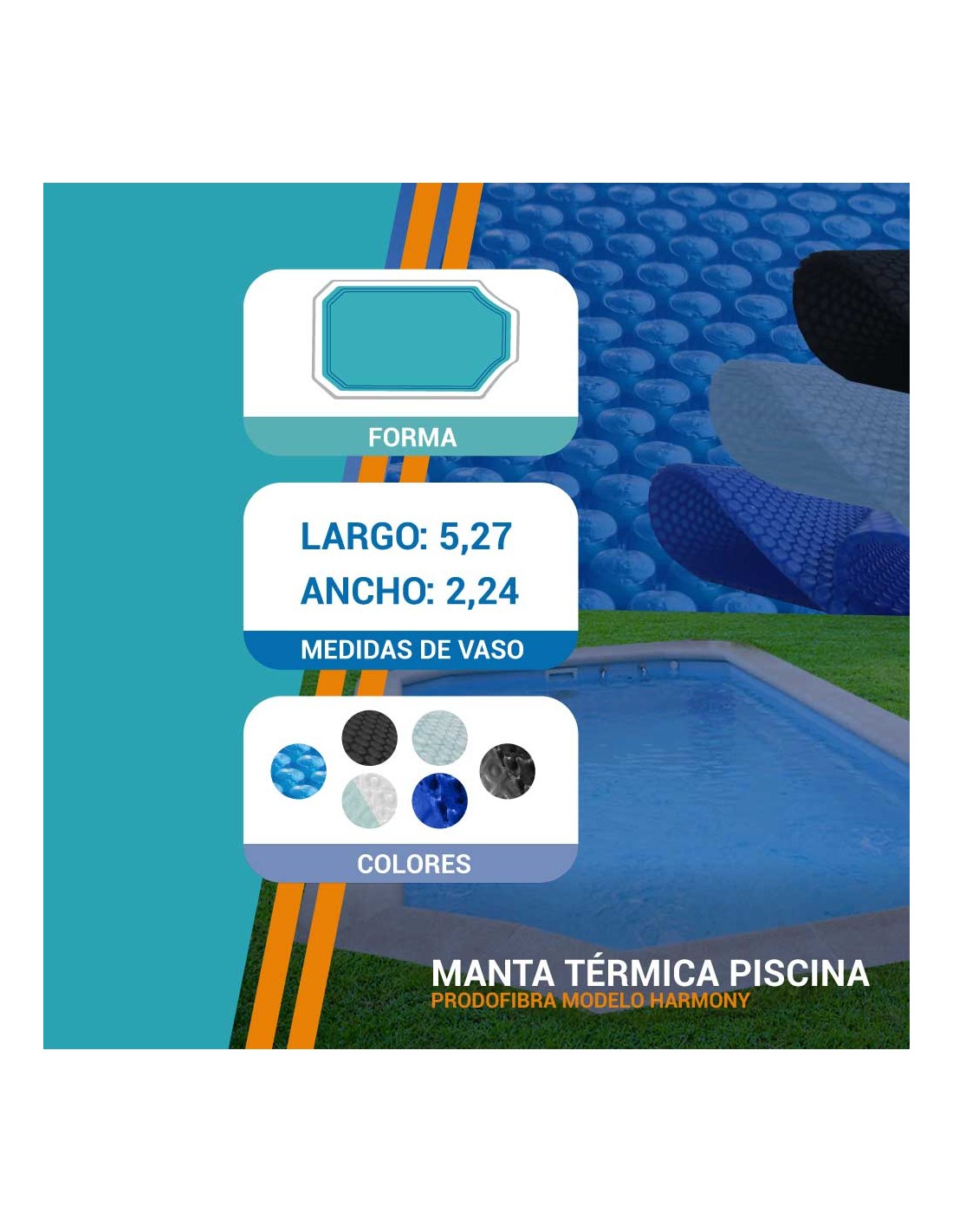 Harmony | 2,24 x 5,27m | Cubiertas piscina de poliéster Prodofibra