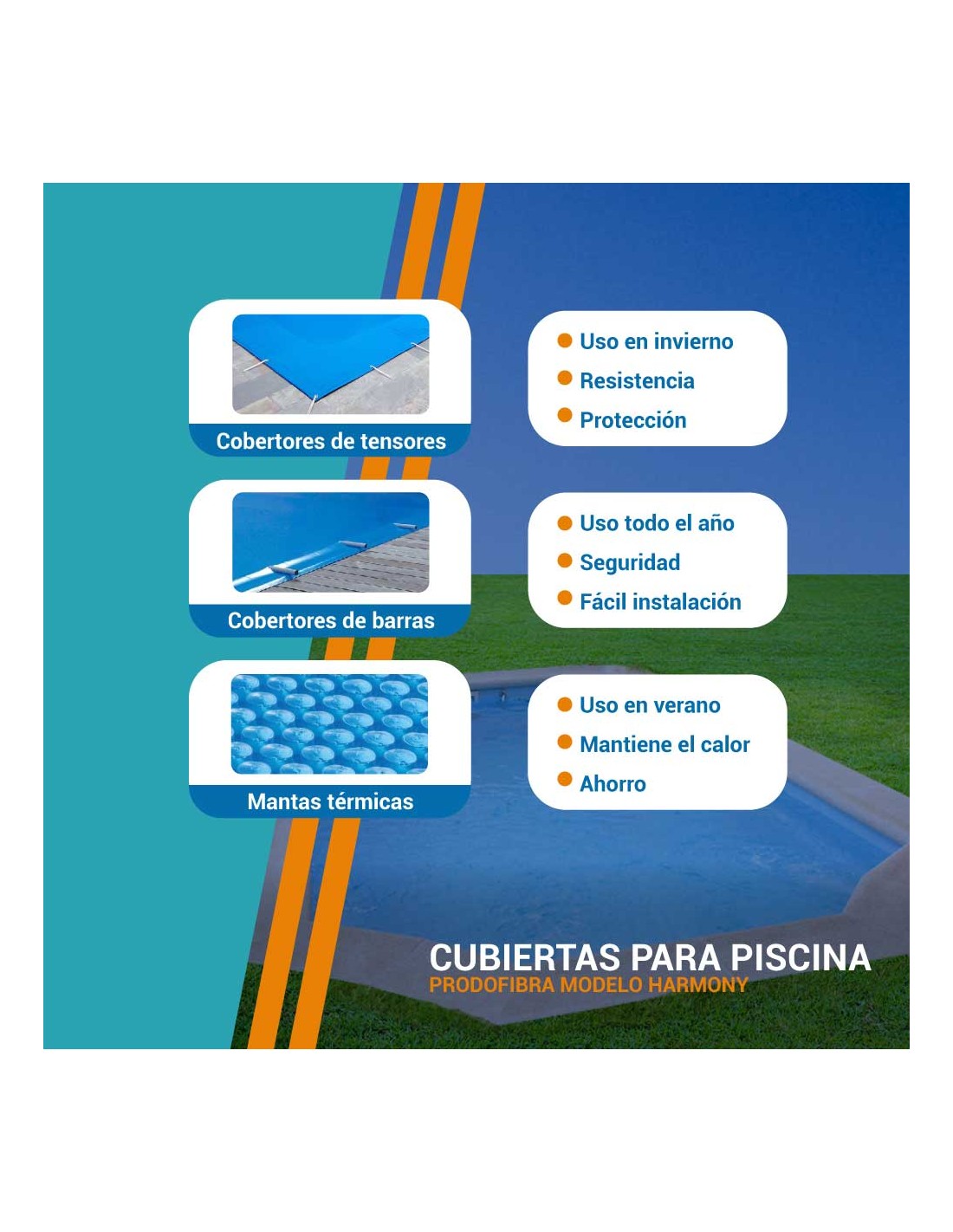 Con estas cubiertas a medida, aseguramos comodidad, seguridad y una mayor vida útil para tu piscina modelo Harmony.