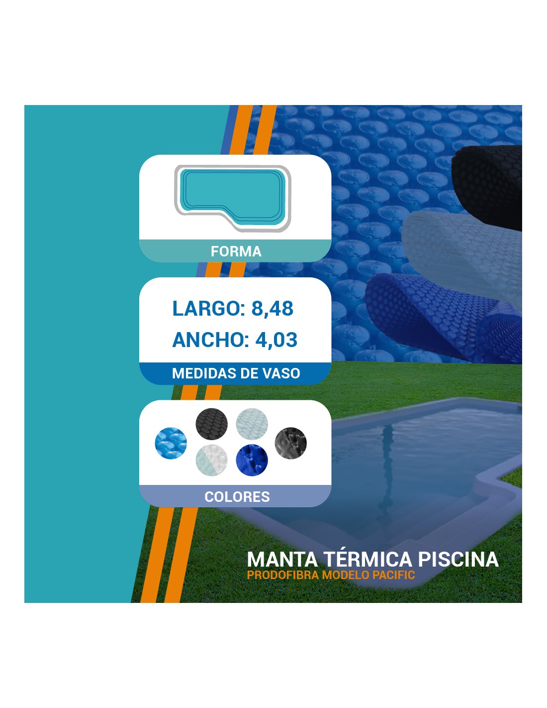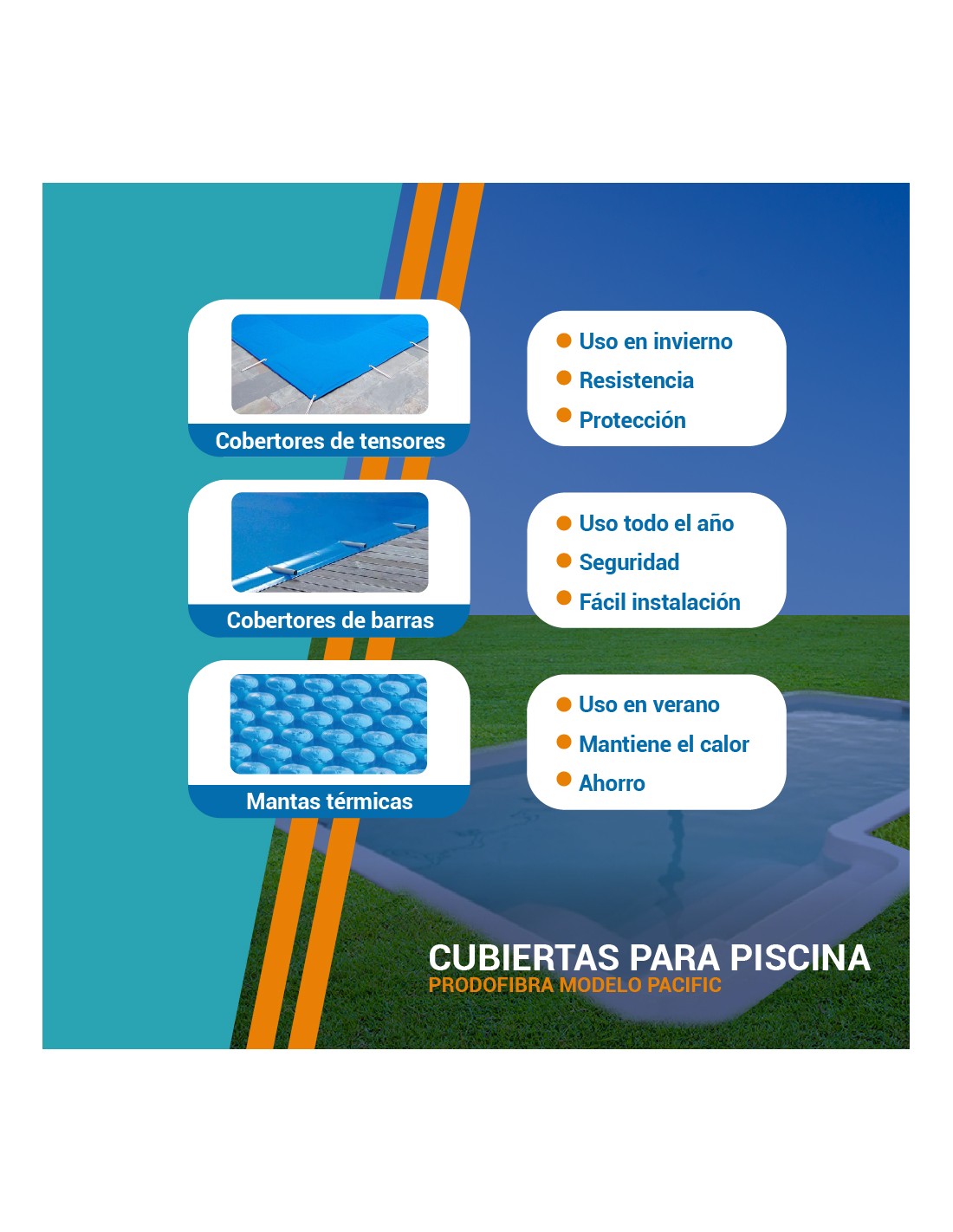 Manta térmica de verano: se coloca sobre la superficie con las burbujas hacia abajo, ayuda a conservar la temperatura que aporta el sol, reduce la evaporación y el consumo de productos químicos, además de impedir la caída de suciedad al agua.