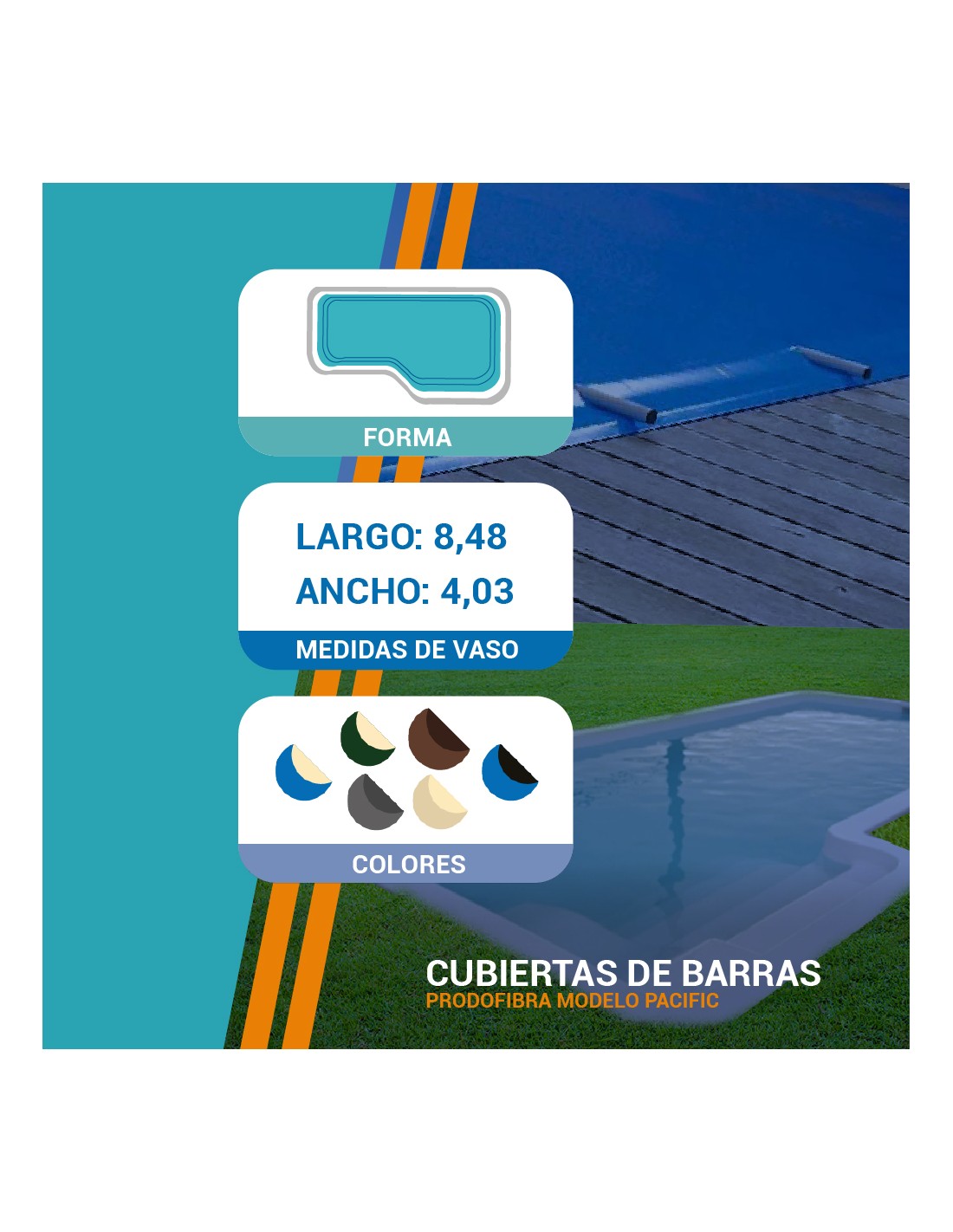 Pacific 8,50 | 4,03 x 8,48m | Cubiertas piscina de poliéster Prodofibra