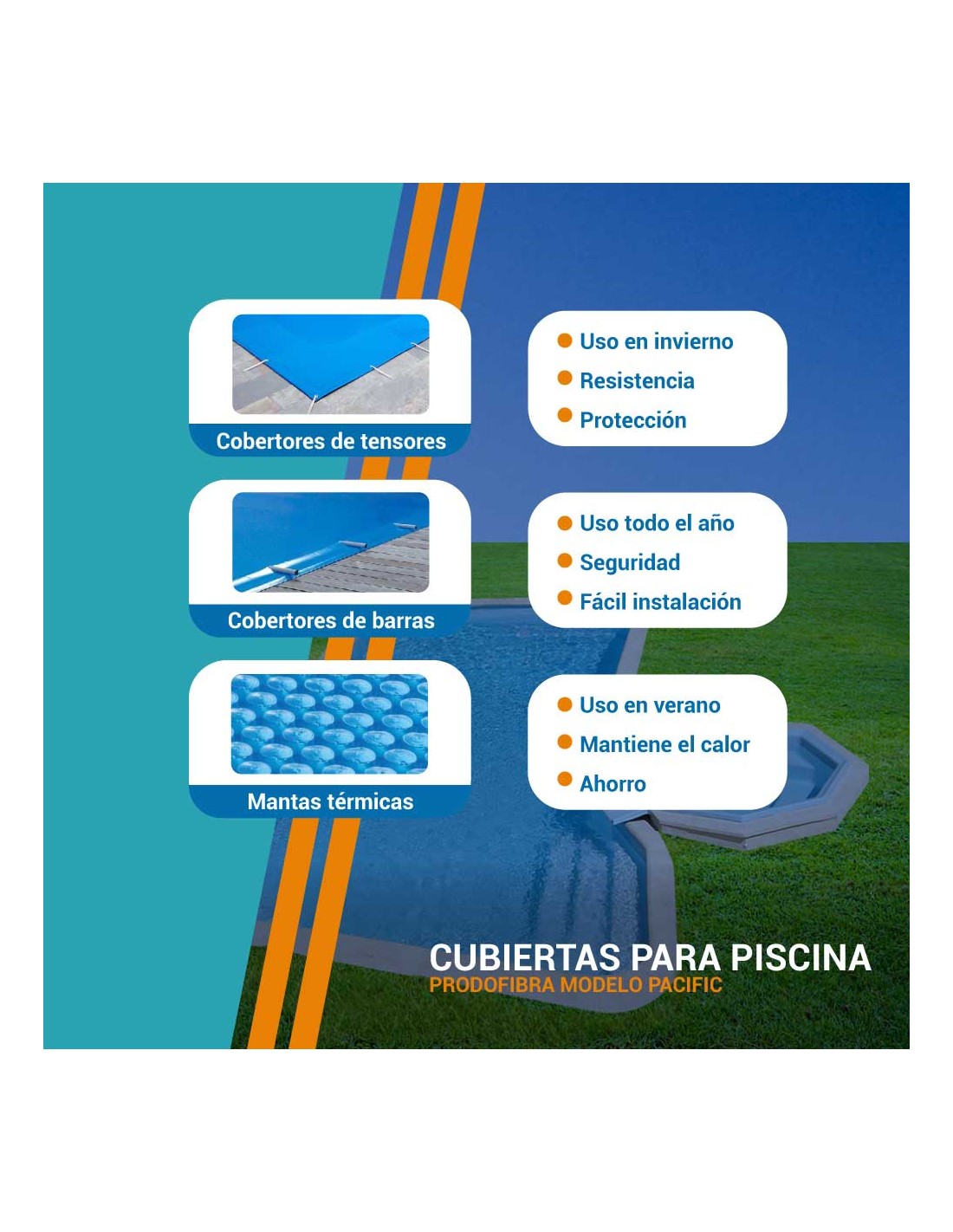 Con estas cubiertas a medida, aseguramos comodidad, seguridad y una mayor vida útil para tu piscina modelo Pacific.